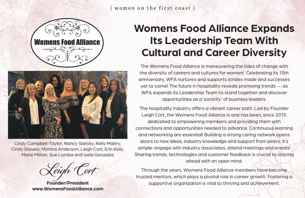 The Womens Food Alliance cultivates and advances Networking, Education, and Collaboration for Women in the Culinary and Hospitality Industry throughout Florida & Coastal Georgia. We are a safe haven of trusted advice, genuine support, and a place to grow. We cherish ‘Friendship First.’